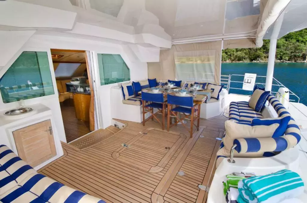 Your dedicated crew of 3 is there to treat you with gourmet food on board or arrange beach BBQs with freshly-caught seafood. You can choose to simply sunbath on the deck, or join your friends of family with exciting activities out on the water. For a day trip or sunset cruise, the catamaran offers entertainment and leisure features to celebrate special events, as you cruise along stunning coasts and nearby islands.