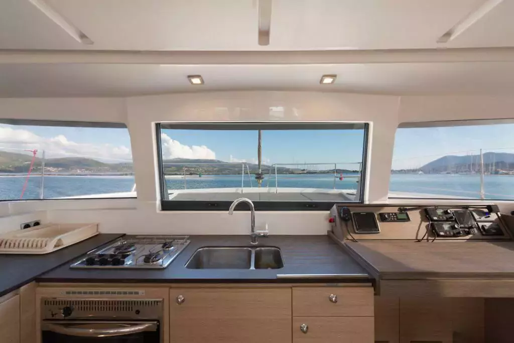 Water sports are in abundance on Peiraevs catamaran charter. At the same time, there is plenty of space to laze around the deck, especially for suntan lovers. If you’re simply in for the ride while your family or group enjoy adrenaline-pumping adventures on the water or on shore, Peiraevs below-deck features and home-like interiors will truly satisfy your need for some peace and quiet.