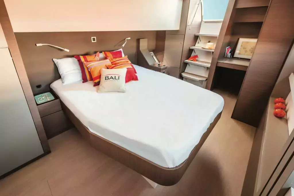 Happy Fifty is a 48 feet sailing catamaran built in 2021 by Bali Catamarans. It has 3 cabins and sleeps 6 guests. A beautiful sailing catamaran offering more than just comfort and style, Happy Fifty perfectly blends world-class technology with safety and entertainment in mind. For a day trip or cruise, this catamaran can accommodate a group of 15, promising relaxation and adventures along the scenic shores with your family and friends.