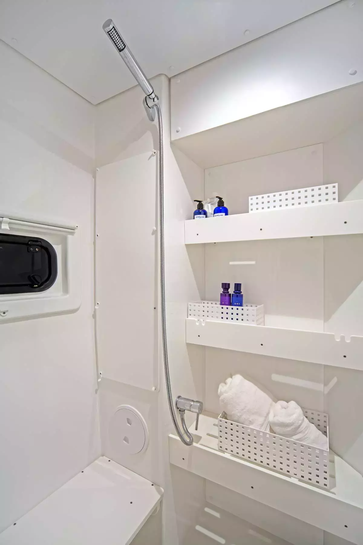Interlude is a fantastic catamaran that offers an ideal sailing holiday. With 4 cabins, you can retreat to your private space at the end of a whole day of water sports, exploration, and adventure. Wellness and relaxation are essential on a vacation, and you’ll get what you truly deserve in this floating oasis.