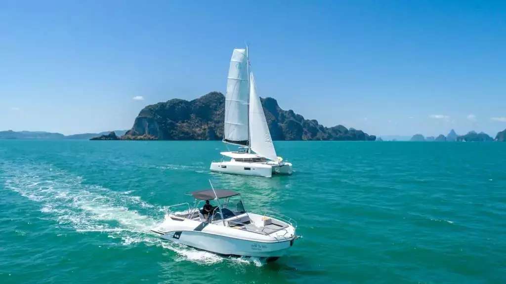 Nauti One is a speedboat that offers smooth sailing over the waters of Southeast Asia. With an intimate crew, stunning features, and capacity to visit more locations in a full-day charter, guests can immerse themselves in the beauty of the coasts, the nearby islands, or simply revel in this speedboat charter experience.