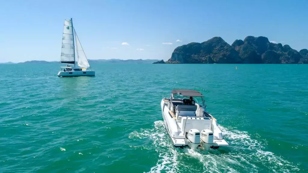 Powerboat Nauti One offers an action-packed adventure that others only dream about. With a spacious deck and dedicated small crew of 1 that cater to your needs and qualms, your speedboat charter in Southeast Asia is simply the best way to spend an extra day or a few hours traversing the coast or nearby waters.