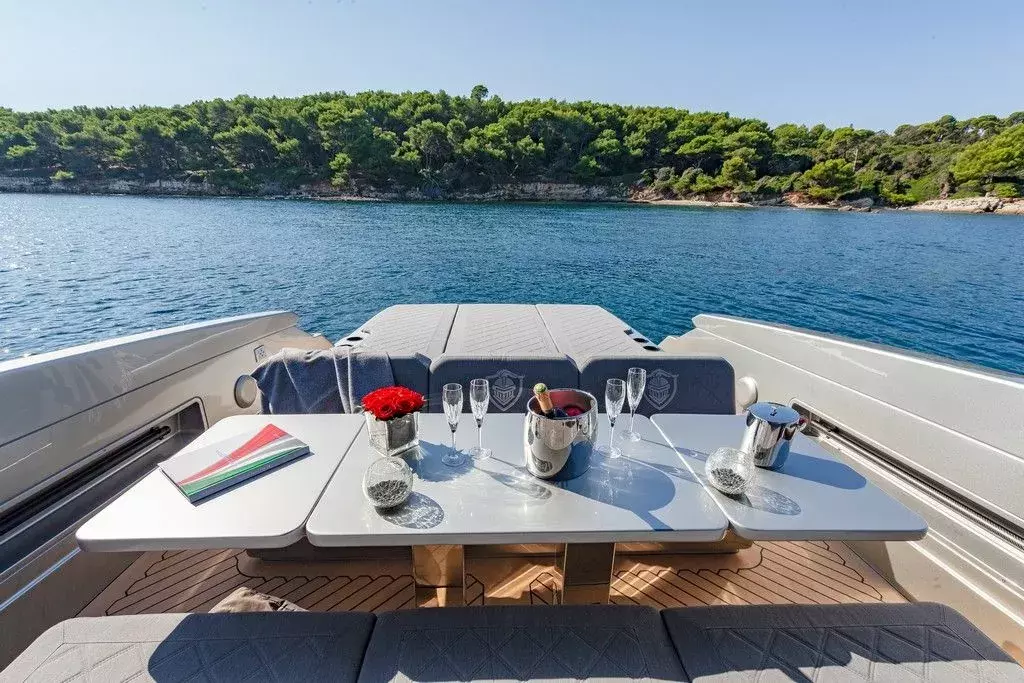 Grand is a speedboat that offers smooth sailing over the waters of Mediterranean. With an intimate crew, stunning features, and capacity to visit more locations in a full-day charter, guests can immerse themselves in the beauty of the coasts, the nearby islands, or simply revel in this speedboat charter experience.