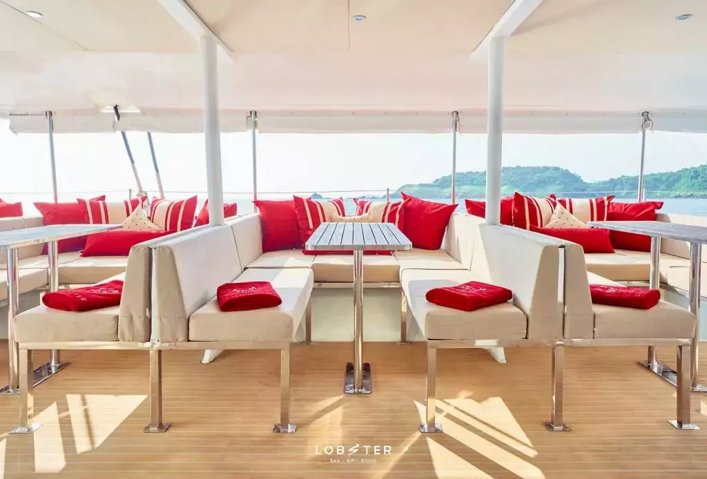 The yacht is also very popular for sunset cruises or for a grand special occasion with friends and family. Get to have the party or romantic dinner under the stars as you witness the sparkling sky above you. With a spacious deck that creates the perfect venue for a special celebration, Lobster is a party yacht bringing the genuine beauty of Southeast Asia.