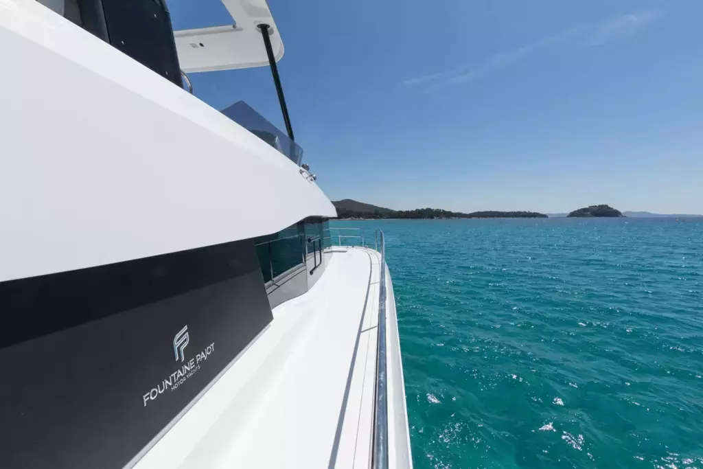 November is a gorgeous 46 feet catamaran built in 2019 by Fountaine Pajot. It can host up to 12 people and is perfect for day trips, half-day trips, and sunset cruises. For those with little time on their hands, a full-day catamaran tour onboard November is the perfect check off your bucket list of sea adventures nearby Golfe-Juan.