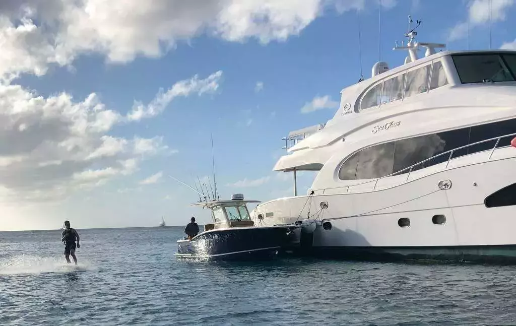 Seaglass is a beautiful boat that allows for a short boat tour charter along the shores. With a spacious deck that creates the perfect venue for a special celebration, or an intimate sunset cruise, Seaglass is a yacht that brings the genuine beauty of Caribbean.