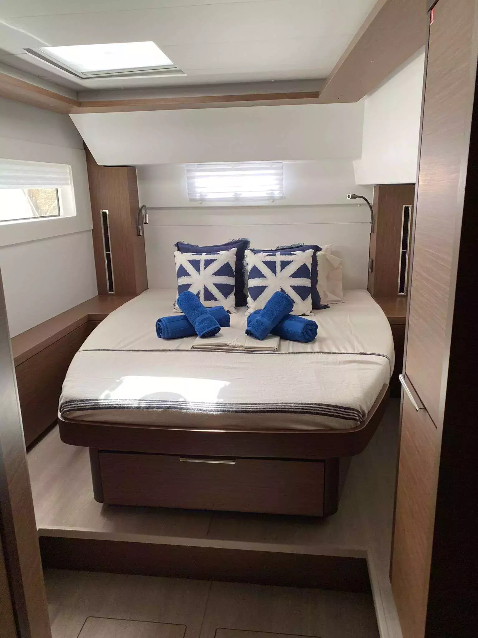 Saramimi is a 46 feet sailing catamaran built in 2022 by Lagoon. It has 6 cabins and sleeps 10 guests. A beautiful sailing catamaran offering more than just comfort and style, Saramimi perfectly blends world-class technology with safety and entertainment in mind. For a day trip or cruise, this catamaran can accommodate a group of 12, promising relaxation and adventures along the scenic shores with your family and friends.