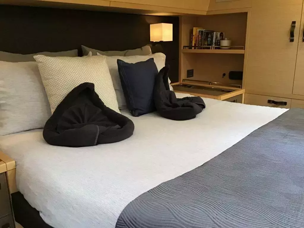 Water sports are in abundance on Callista catamaran charter. At the same time, there is plenty of space to laze around the deck, especially for suntan lovers. If you’re simply in for the ride while your family or group enjoy adrenaline-pumping adventures on the water or on shore, Callista below-deck features and home-like interiors will truly satisfy your need for some peace and quiet.