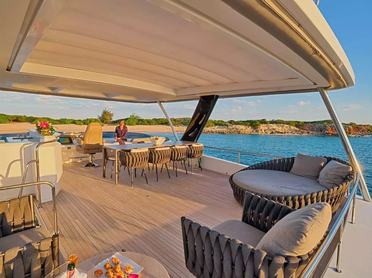Frenchwest was built for the discerning traveler in mind, specifically those who want to enjoy the waters of Caribbean with their family and loved ones in tow. On deck, a world of possibilities awaits. From alfresco dining to outdoor BBQs, or simply sunbathing on deck, adults can relax on board while teenagers can enjoy exciting activities out on the water. For a day trip or sunset cruise, the yacht offers entertainment and leisure features to celebrate special events, as you cruise stunning coasts.