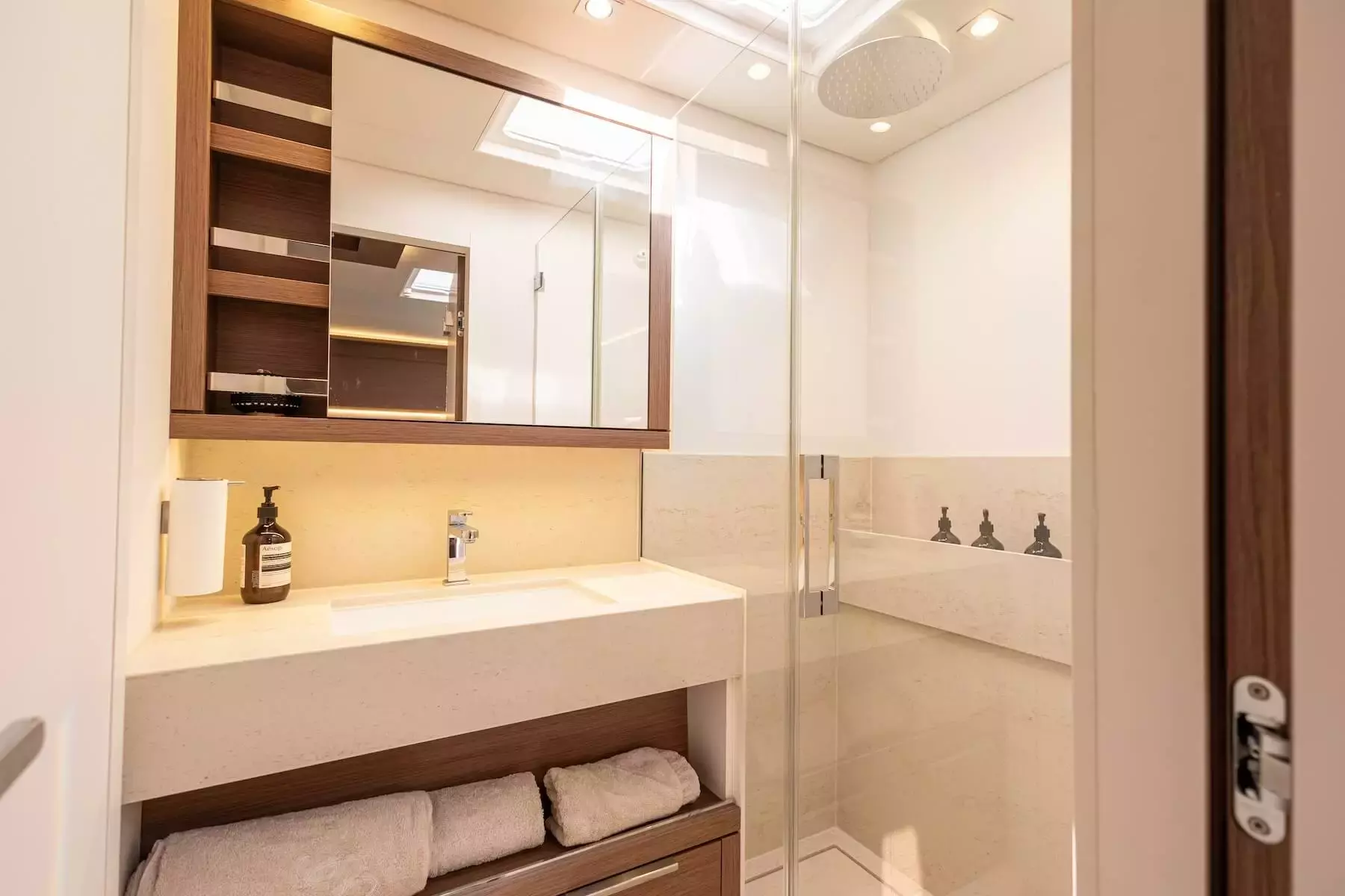 Combining cutting edge technology with speed and luxury Mio Porcellino delivers an experience for those seeking a power catamaran charter. The spacious and elegantly designed interiors provide a sanctuary after a day filled with exploration and excitement. Featuring 4 cabins equipped with amenities guests can indulge in privacy and relaxation within their personal haven.