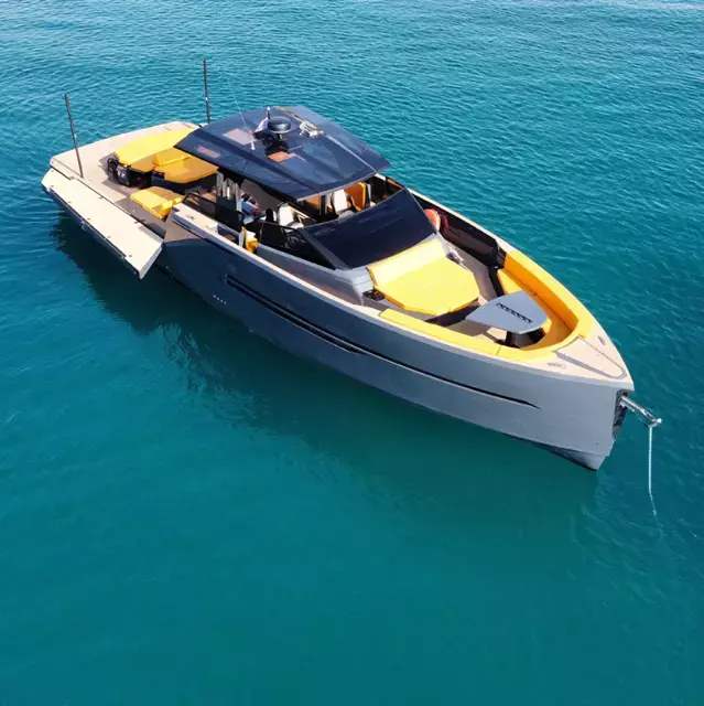 Flying Spur is a powerboat that offers smooth sailing over the waters of Mediterranean. With an intimate crew, stunning features, and capacity to visit more locations in a full-day charter, guests can immerse themselves in the beauty of the coasts, the nearby islands, or simply revel in this powerboat charter experience.