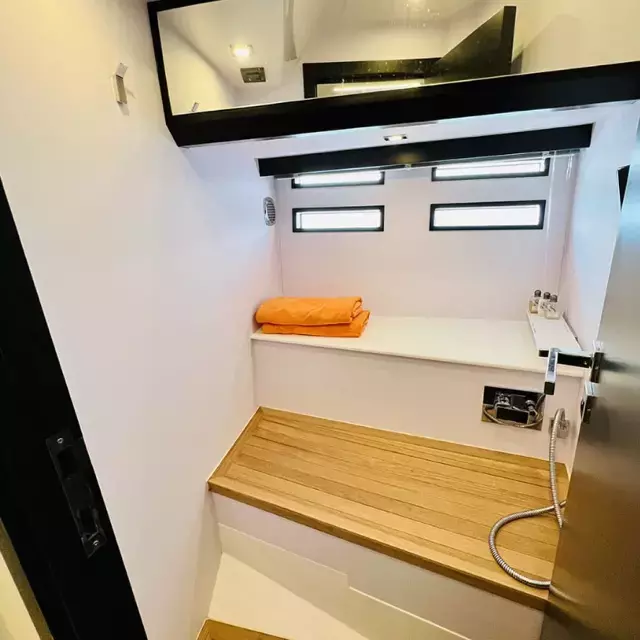 Enjoy the onboard amenities as you travel from one island or bay to another getting ready for the activities ahead. Thanks to its speed and maneuverability Flying Spur lets guests discover coves and stunning bays that are usually only accessible to a few.