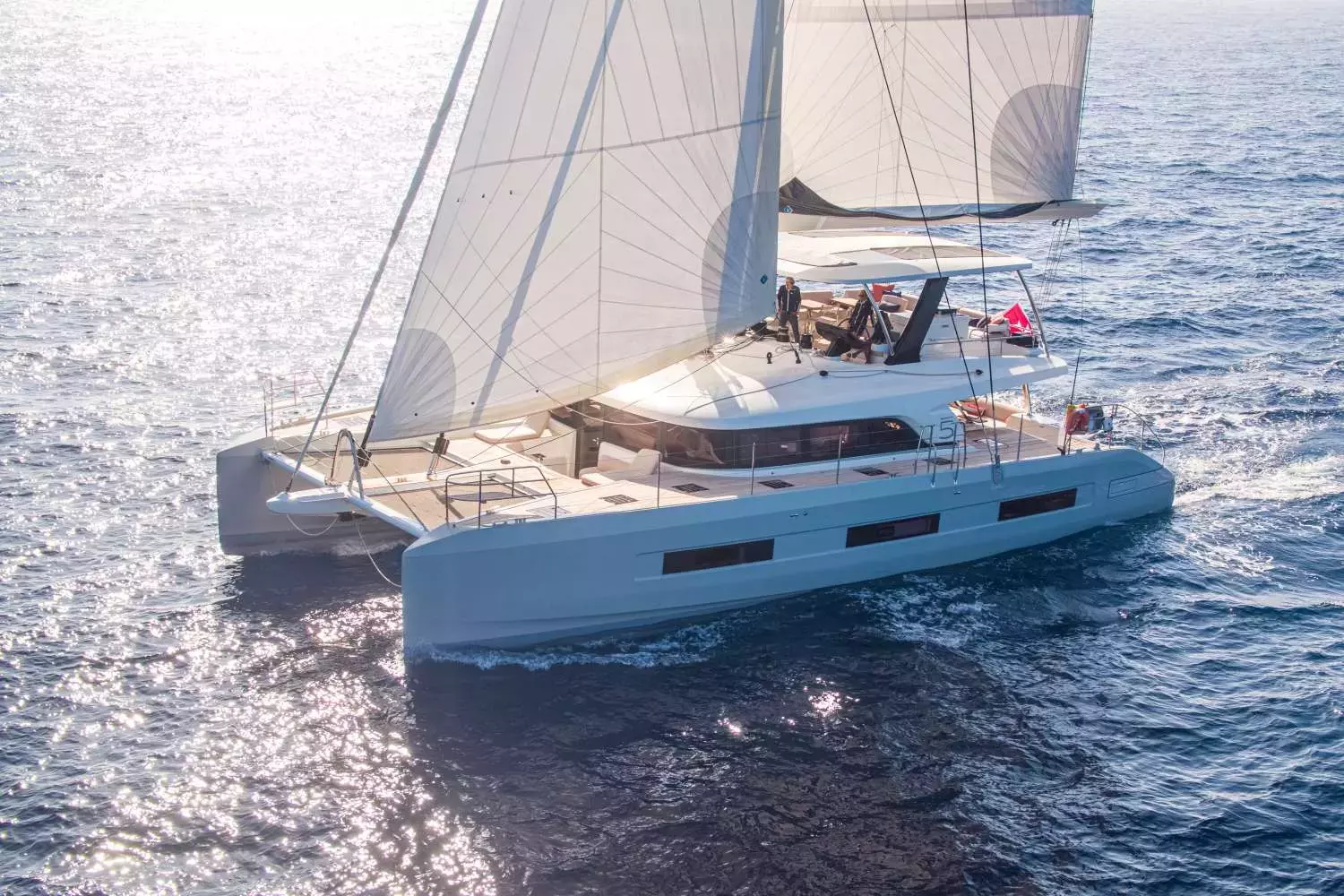 "Lady M" is a 18m (59ft) long Sailing Catamaran with 4 cabins and enough space for 8 guests during day charters. The Boat was built in 2025 by Lagoon and can reach a top speed of 10 knots. You can rent Lady M with a crew for $7,555 per day and enjoy a Boating holiday with your family and friends.