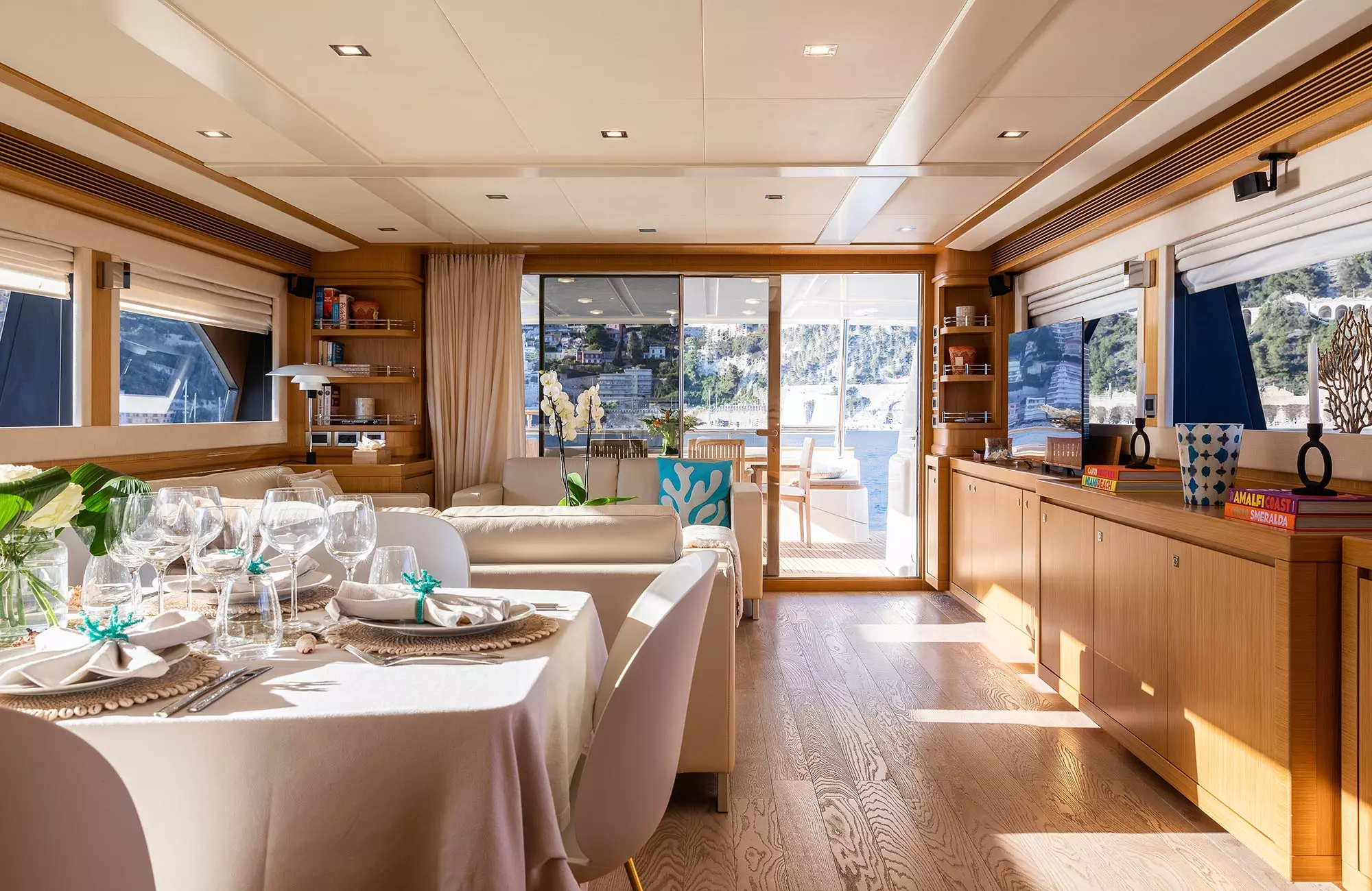 Your yacht is a floating beach club, a family living room, and a five‑star restaurant – whichever you need this hour.