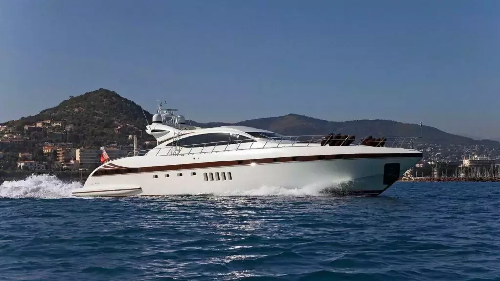"Bear Market" is a 28m (92ft) long Motor Yacht with 4 cabins and enough space for 12 guests during day charters. The Yacht was built in 2003 (last refit in 2010) by Mangusta and can reach a top speed of 31 knots. You can rent Bear Market with a crew for $6,509 per day and enjoy a Yachting holiday with your family and friends.