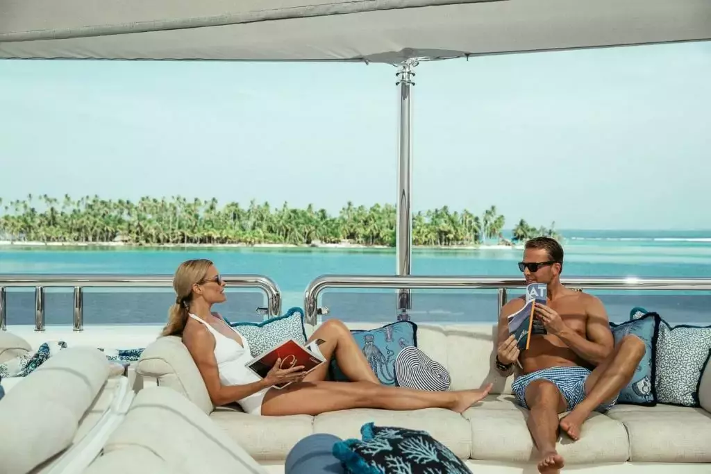 The moment you arrive on board, you will immediately fall in love with the lush on-deck features, plus countless amenities designed for rest and relaxation. The living area promises entertainment, solace, exclusivity, and peace.