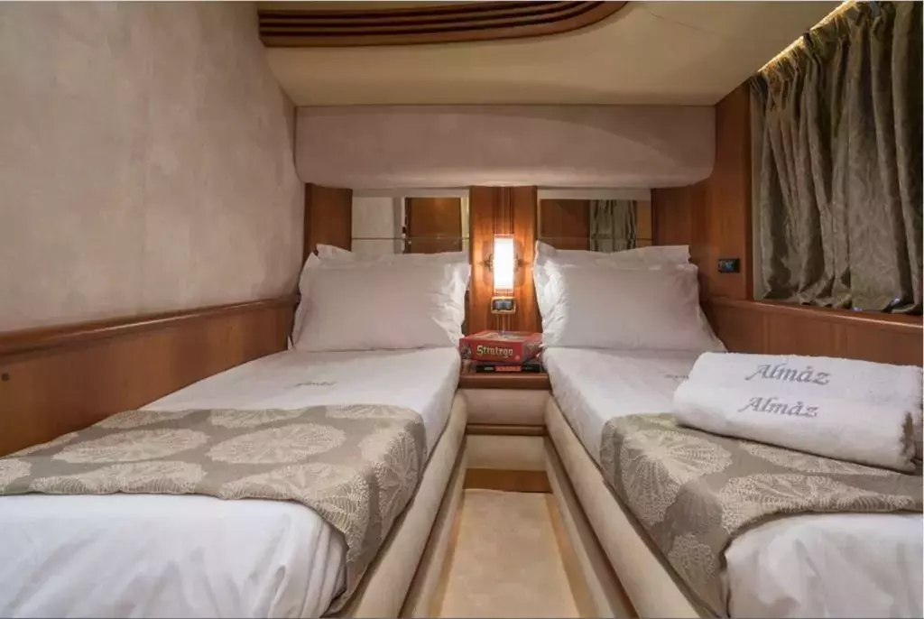Almaz is a grand motor yacht built in 2008 and refitted in 2017. Built by Azimut and having a length of 66 feet, Almaz features 4 cabins and sleeps 8, or takes up to 12 guests for a day trip with a friendly crew of 3. Packed with features that make an unforgettable yacht charter in Mediterranean, Almaz offers you tailor-made yacht holidays you’ll never forget.