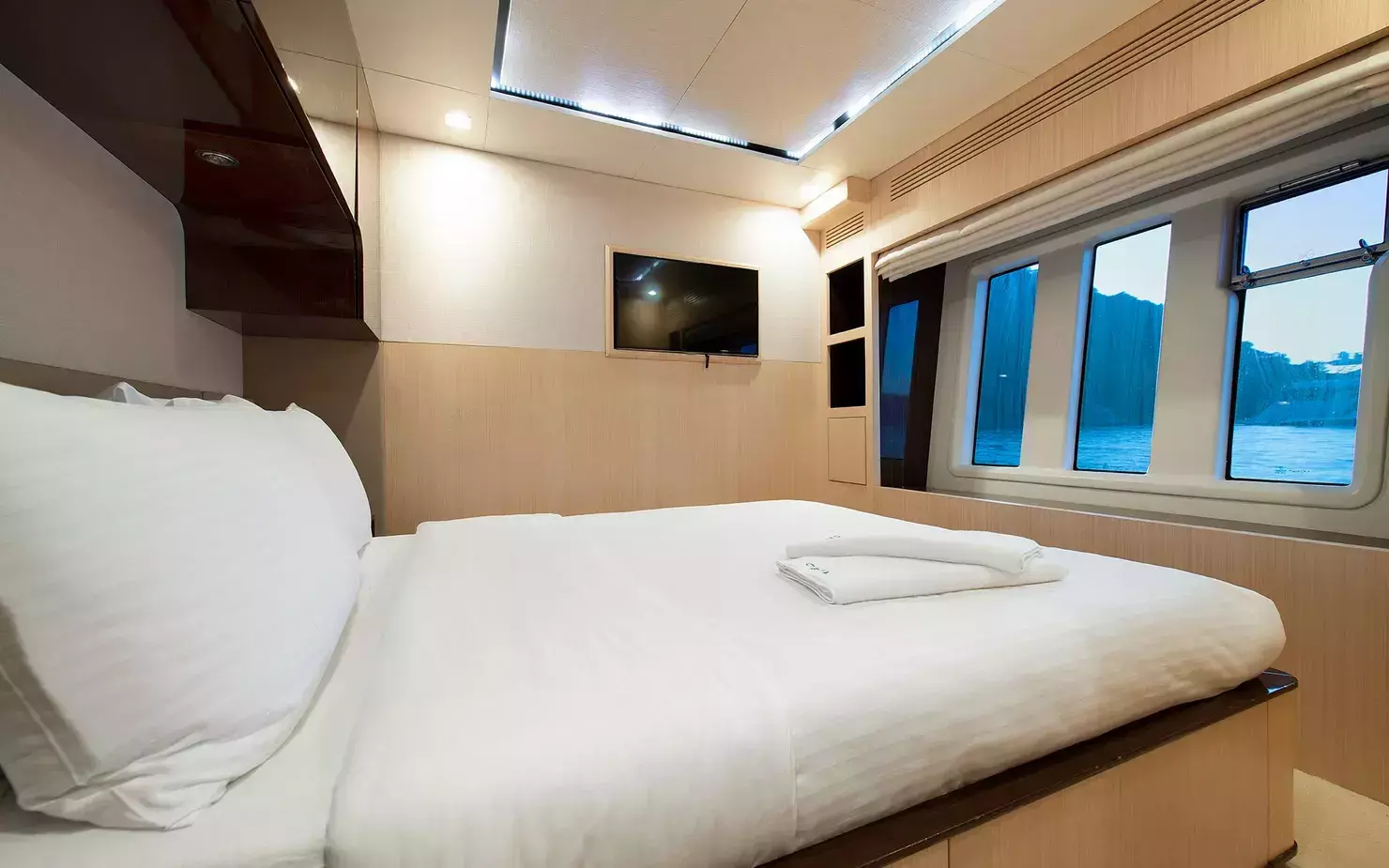 With a spacious deck that presents plenty of opportunities for both fun and relaxation, take your pick from the countless toys that you can enjoy on water, underwater, and on land. And to top it all off, you can end the day in comfort and pampering in your very own spacious, and exclusive ensuite cabins. Hubo is a beautiful motor yacht charter highlighted with luxury amenities and impeccable service.