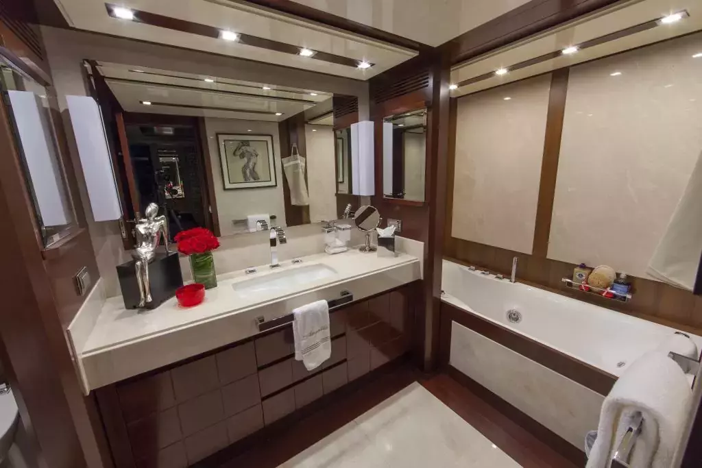 Sorridente navigation features provide the safety, security, and smooth sailing you need for a yacht holiday that delivers. Reaching 95 feet, with an expansive deck, you and your party can enjoy endless hours of fun, entertainment, and adventure. Whether you choose to enjoy an alfresco dinner, watch the most beautiful sunsets on the horizon with a glass of champagne in hand, or take out the water toys for exciting water sport activities, Sorridente will offer you all kinds of festivities onboard and out on the waters or on the islands you visit.