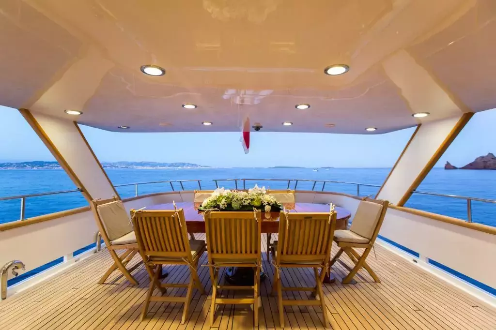 Libertus is a grand motor yacht built in 1975 and refitted in 2015. Built by Benetti and having a length of 98 feet, Libertus features 5 cabins and sleeps 9, or takes up to 12 guests for a day trip with a friendly crew of 4. Packed with features that make an unforgettable yacht charter in Mediterranean, Libertus offers you tailor-made yacht holidays you’ll never forget.