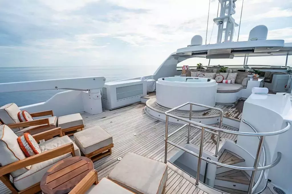 Your friendly crew of 6 is there to treat you with gourmet food on board or arrange beach BBQs with freshly-caught seafood. You can choose to simply sunbath on the deck, or join your friends of family with exciting activities out on the water. For a day trip or sunset cruise, the yacht offers entertainment and leisure features to celebrate special events, as you cruise along stunning coasts and nearby islands.