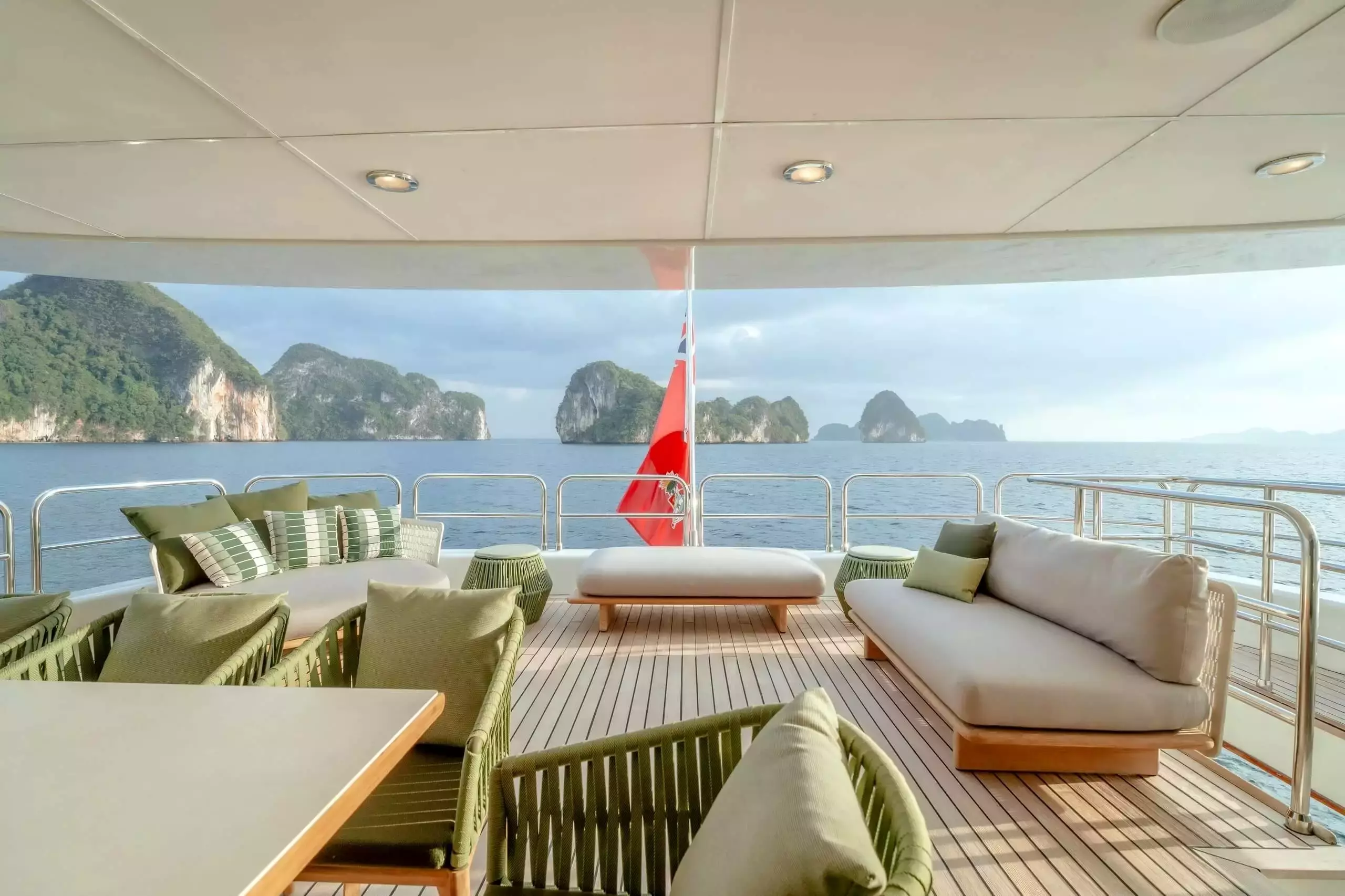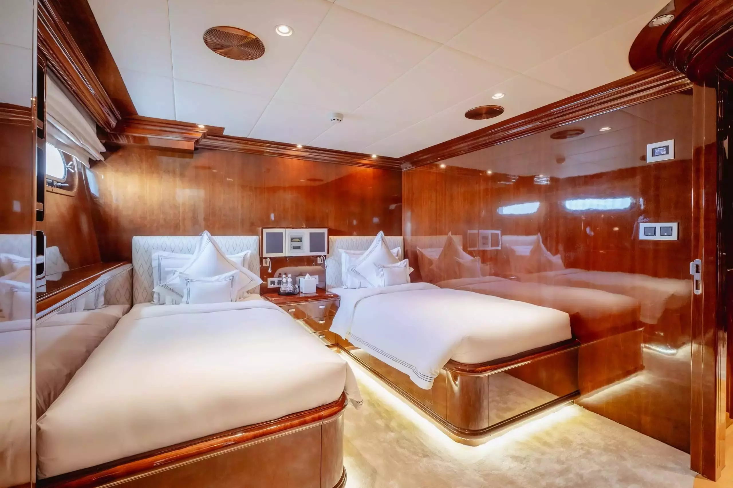 Step aboard Silentworld. Indulge in a world of comfort and elegance. Its sleek exterior design and opulent interior décor make it an ideal choice for voyages or leisurely sailing trips. The spacious living areas and appointed suites provide a retreat after each days adventures catering to those seeking the ultimate experience and Deck Jacuzzi and Gym onboard.