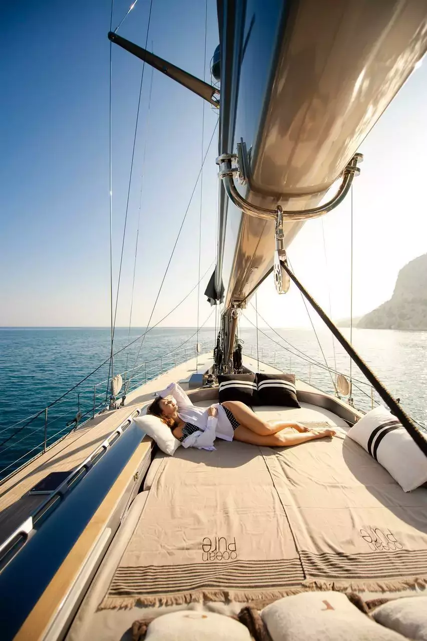 Ocean Pure 2 is a 131 feet sailing yacht built in 1992 and refitted in 2019. It has 5 cabins and sleeps 11, built by master builder Concorde Yachts. A beautiful sailing yacht that offers more than just comfort and style, Ocean Pure 2 provides privacy, relaxation, and adventures, which make up the primary ingredients for a romantic getaway or a sailing holiday along scenic shores with family and friends.