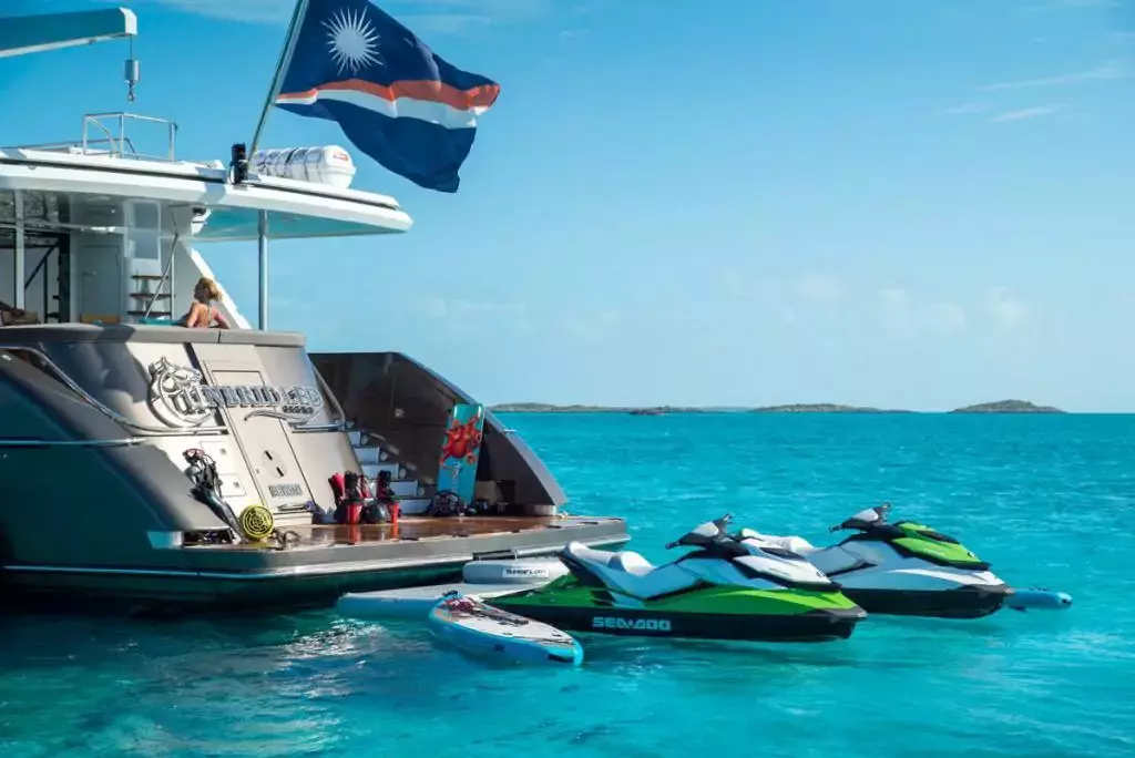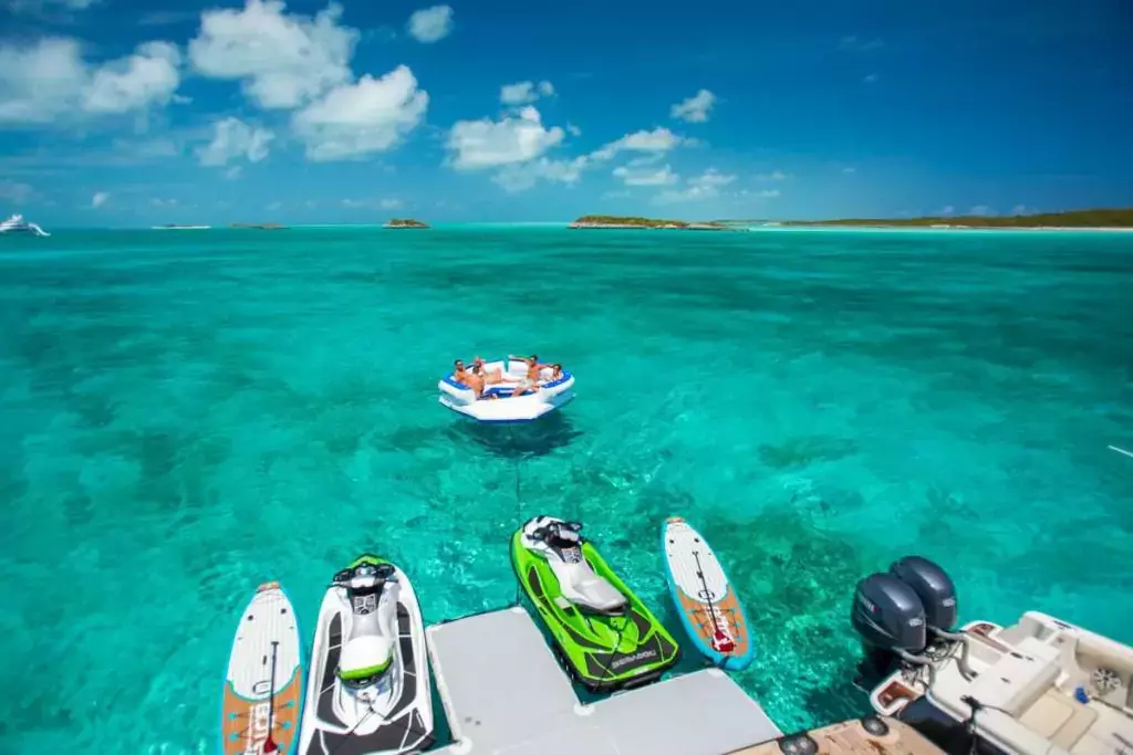 Guaranteeing to enhance your charter experience, the full arsenal of water toys and equipment in Unbridled provides you with entertainment, excitement, and countless days of fun and adventure on water. Besides traditional water sports, this superyacht offers personal watercraft that includes Seadoo Jet Ski and Flyboard. This collection of action-packed amenities make Unbridled the yacht of choice exhilarating pursuits.
