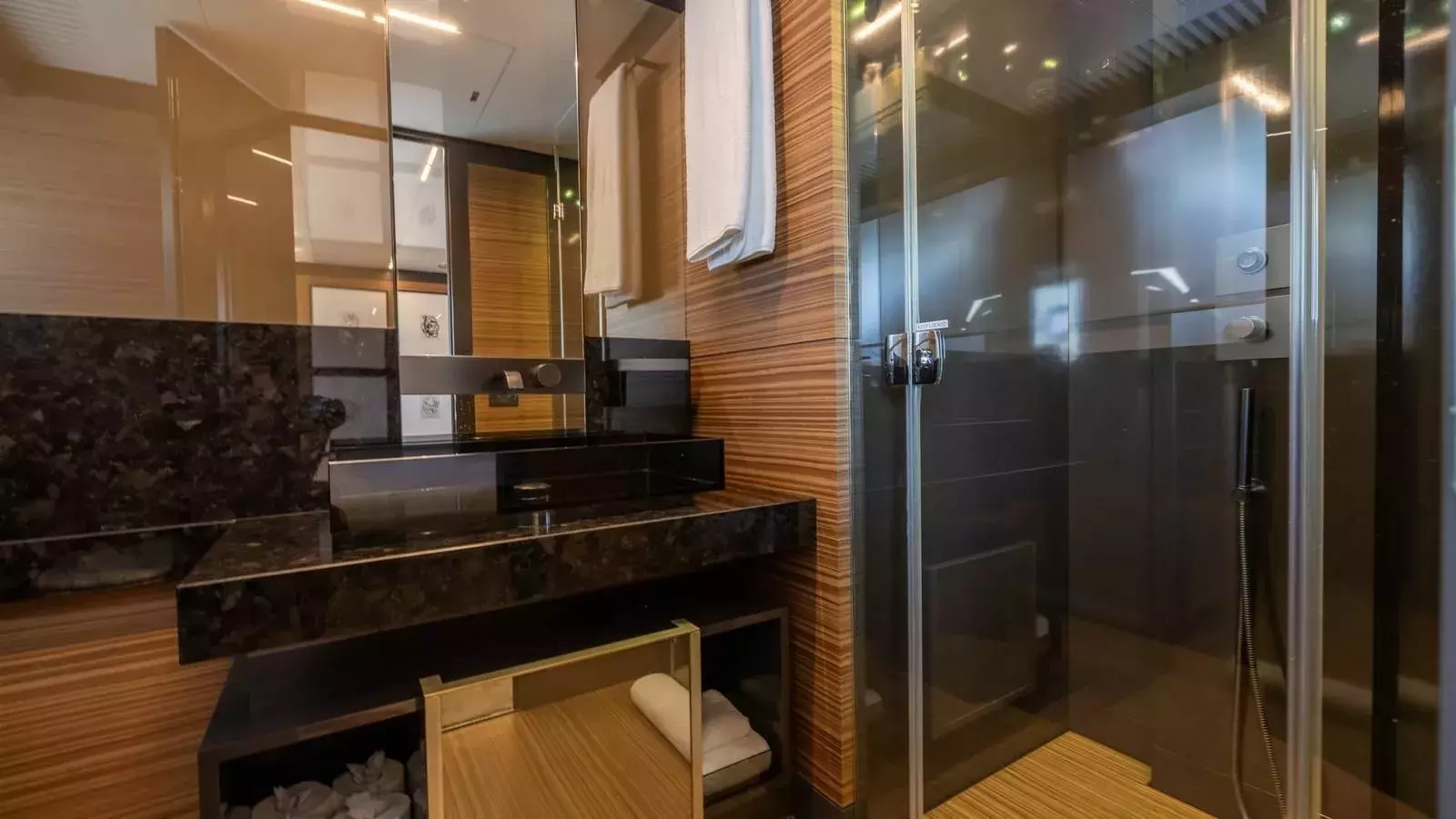 Enjoy the amenities available, onboard Date Night. Whether you prefer soaking up the sun on decks, taking a dip in the jacuzzi or having a cozy movie night in the private cinema on board, there's something for everyone. Fitness buffs will find an equipped gym to their liking while food enthusiasts can savor dishes prepared by the skilled onboard chef.