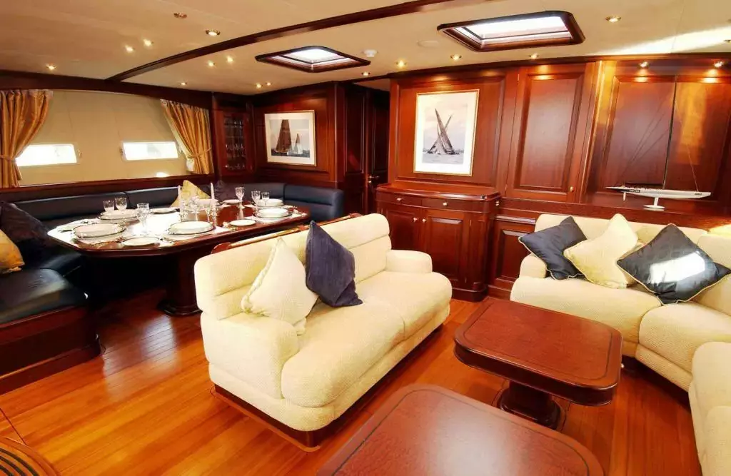 Sojana is a 115 feet sailing yacht built in 2003 and refitted in 2016. It has 3 cabins and sleeps 6, built by master builder Green Marine. A beautiful sailing yacht that offers more than just comfort and style, Sojana provides privacy, relaxation, and adventures, which make up the primary ingredients for a romantic getaway or a sailing holiday along scenic shores with family and friends.