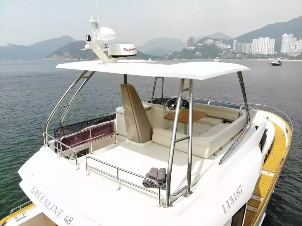 Greenline navigation features provide the safety, security, and smooth sailing you need for a yacht holiday that delivers. Reaching 48 feet, with an expansive deck, you and your party can enjoy endless hours of fun, entertainment, and adventure. Whether you choose to enjoy an alfresco dinner, watch the most beautiful sunsets on the horizon with a glass of champagne in hand, or take out the water toys for exciting water sport activities, Greenline will offer you all kinds of festivities onboard and out on the waters.