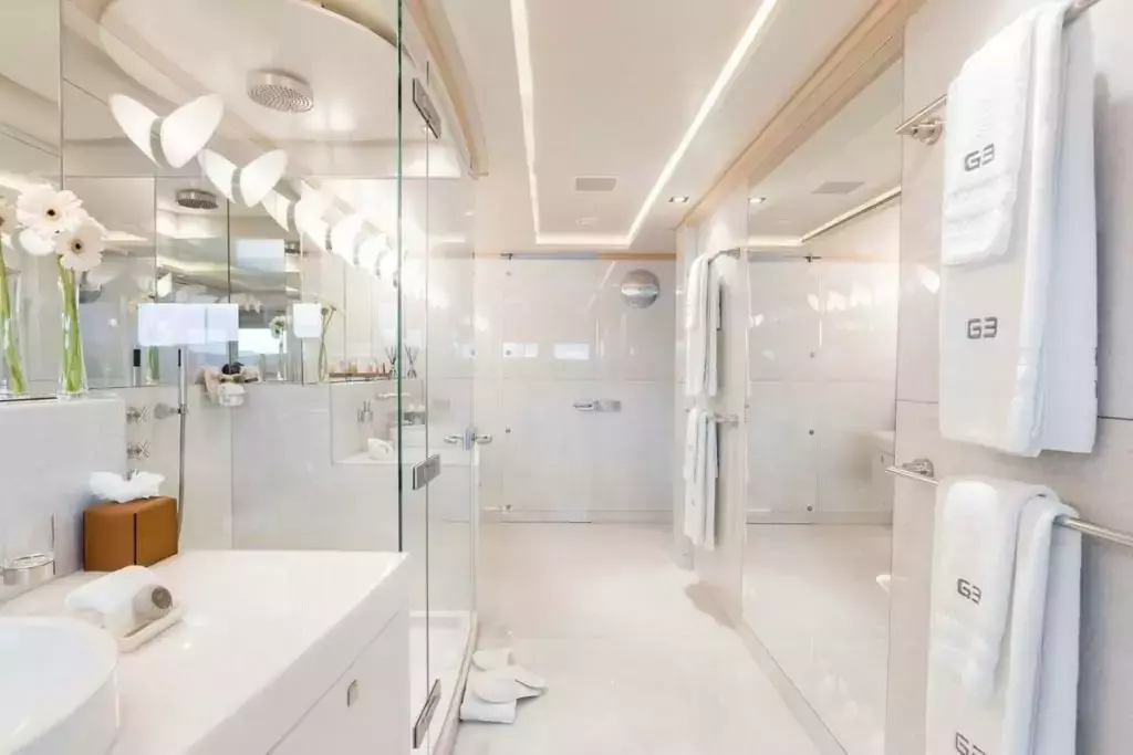G3 is a 144 feet sailing catamaran built in 2008 by Heesen. It has 5 cabins and sleeps 12 guests. A beautiful sailing catamaran offering more than just comfort and style, G3 perfectly blends world-class technology with safety and entertainment in mind. For a day trip or cruise, this catamaran can accommodate a group of 18, promising relaxation and adventures along the scenic shores with your family and friends.