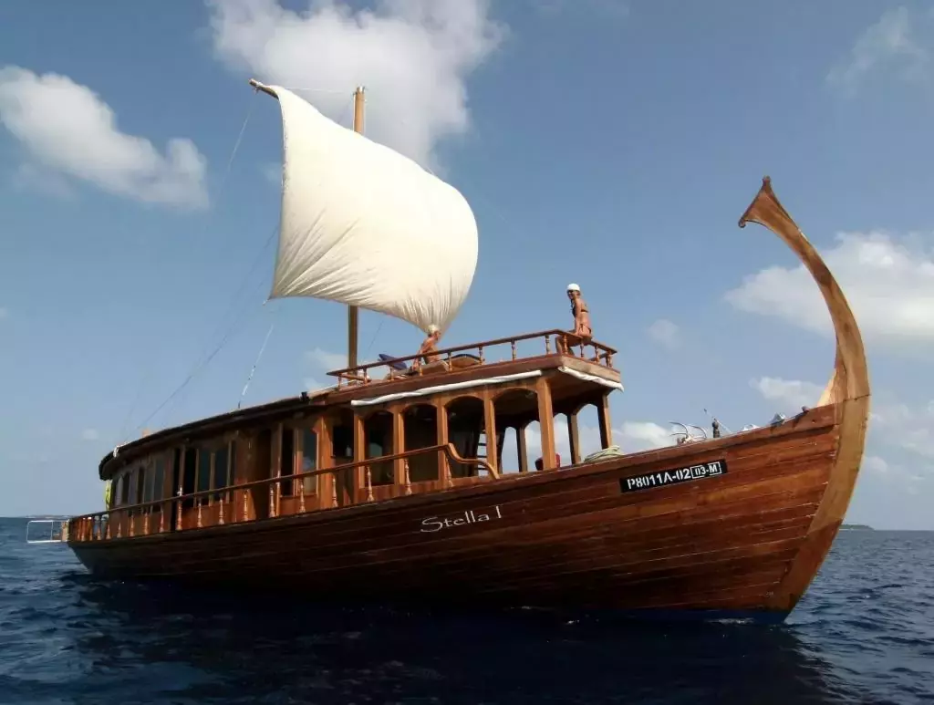 Dhoni Stella is a beautiful boat that provides more than just a stunning and comfortable vessel to relax in. It is an exclusive experience integrating a diving holiday, as well as adventures to faraway islands that can only be accessed with a boat such as Dhoni Stella.