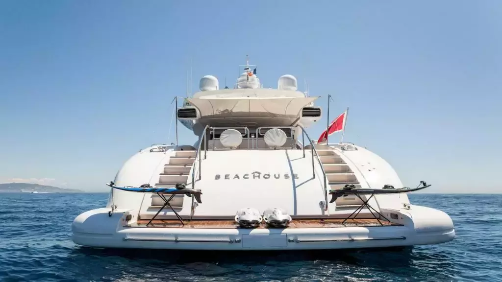 Beachouse is a 131 feet superyacht built for thrill seekers in mind, wishing to explore boundaries. With 4 cabins, Beachouse accommodates 10 guests, and features the latest and most exciting water toys you can find today. Built by Mangusta in 2009 and refitted in 2019, adrenaline junkies will have the time of their lives on board this luxurious yacht fit for adventures on the seas of Mediterranean.