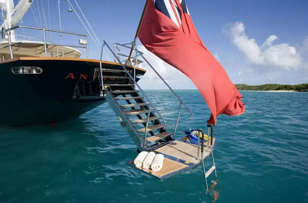 Antara is a 151 feet sailing yacht built in 1991 and refitted in 2014. It has 4 cabins and sleeps 10, built by master builder Perini Navi. A beautiful sailing yacht that offers more than just comfort and style, Antara provides privacy, relaxation, and adventures, which make up the primary ingredients for a romantic getaway or a sailing holiday along scenic shores with family and friends.