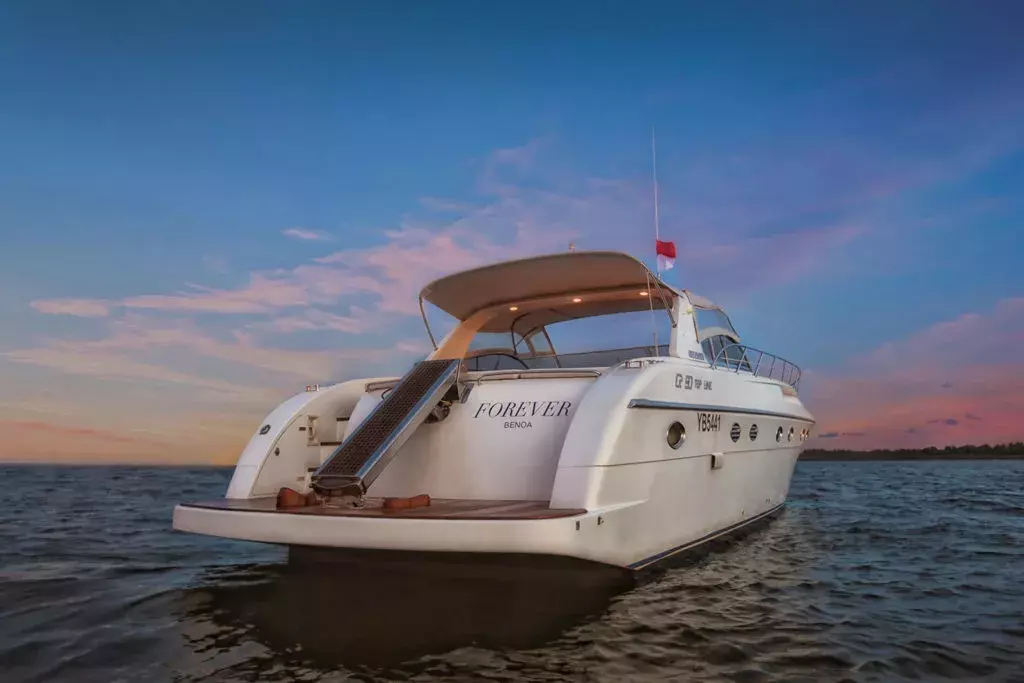 Forever is a 49 feet motor yacht built in 2001 by Rizzardi. It can host up to 13 people and is perfect for day trips, half-day trips, and sunset cruises. For those with little time on their hands, a full-day boat tour onboard Forever is the perfect check off your bucket list of things to do and experiences in Bali.