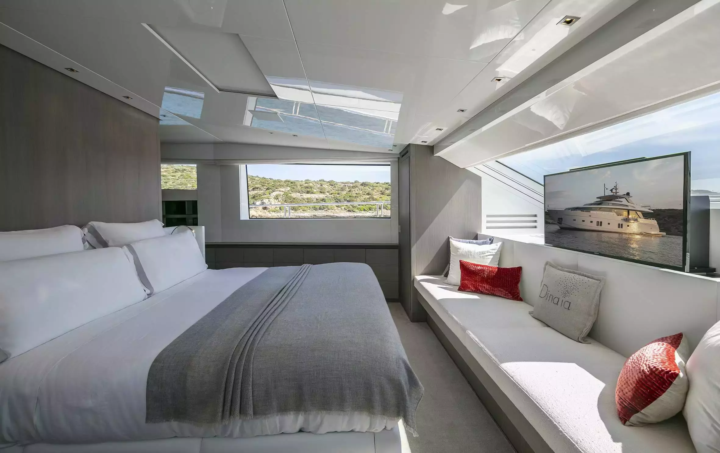 In addition, Dinaia can take 12 guests on a day charter for special celebrations with a professional and dedicated crew of 6. Step on board and you’ll immediately fall in love with all the spaces designed to offer optimal enjoyment. From the lavish exteriors to the lush interiors that spell out comfort and luxury, you will absolutely feel at home.