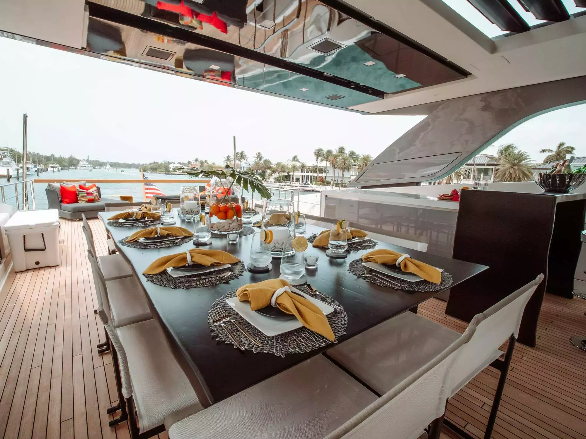 In addition, Fifty Shades can take 12 guests on a day charter for special celebrations with a professional and dedicated crew of 5. Step on board and you’ll immediately fall in love with all the spaces designed to offer optimal enjoyment. From the lavish exteriors to the lush interiors that spell out comfort and luxury, you will absolutely feel at home.