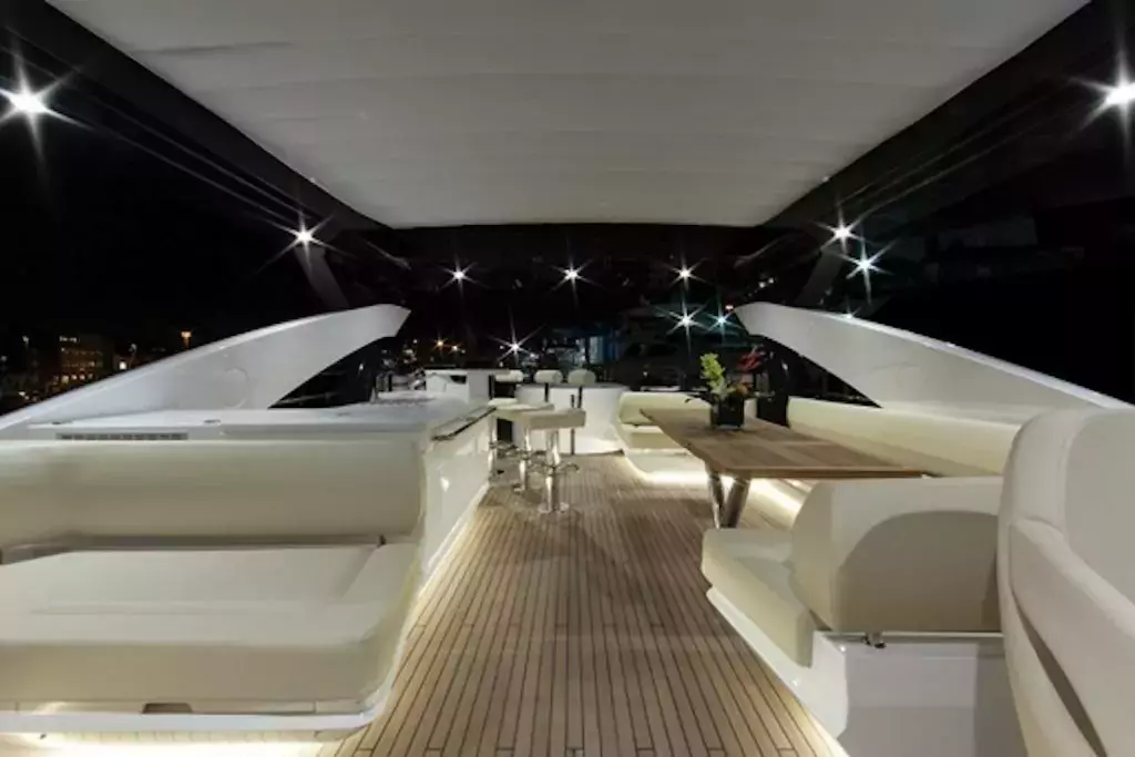 High Energy navigation features provide the safety, security, and smooth sailing you need for a yacht holiday that delivers. Reaching 92 feet, with an expansive deck, you and your party can enjoy endless hours of fun, entertainment, and adventure. Whether you choose to enjoy an alfresco dinner, watch the most beautiful sunsets on the horizon with a glass of champagne in hand, or take out the water toys for exciting water sport activities, High Energy will offer you all kinds of festivities onboard and out on the waters.