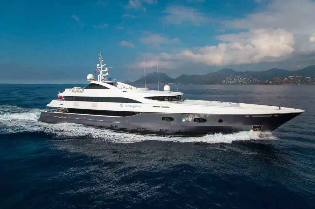Turquoise is a 180 feet superyacht built for thrill seekers in mind. With 6 cabins, Turquoise accommodates 12 guests, and features the latest and most exhilarating water toys you can find today. Built by Turquoise in 2011 and refitted in 2019, adrenaline junkies will have the time of their lives on board this luxurious yacht fit for adventures on the seas of Caribbean.